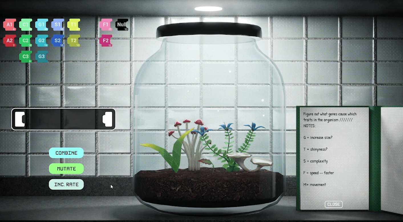 I drew inspiration from real-world plants and fungi to imagine an alien biological system. The experience is designed to simulate the process of genetic engineering, allowing the player to embody a scientific researcher.